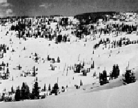 1957年春、今のベイルマウンテン頂上に7時間をかけて登った二人は、全景を綺麗に表す「ホーリークロス山脈」、奥に奥にと広がる「バックボール」、北斜面を覆うスキーに適したバラエティ溢れる斜面にすっかり魅了されました。ピーターは初めてベイル山頂に立ったとき「俺が知っているスキー場のどれよりもいいスキー場になるのは間違いない」と確信しました。 1958年から59年にかけて出資者を募ってベイル会社をスタートさせましたが、林野省からのスキー場許可が降りないわ、資金は底をつくわで、順調なスタートとは言えませんでしたが1962年12月15日にスキー場開きを迎えました。