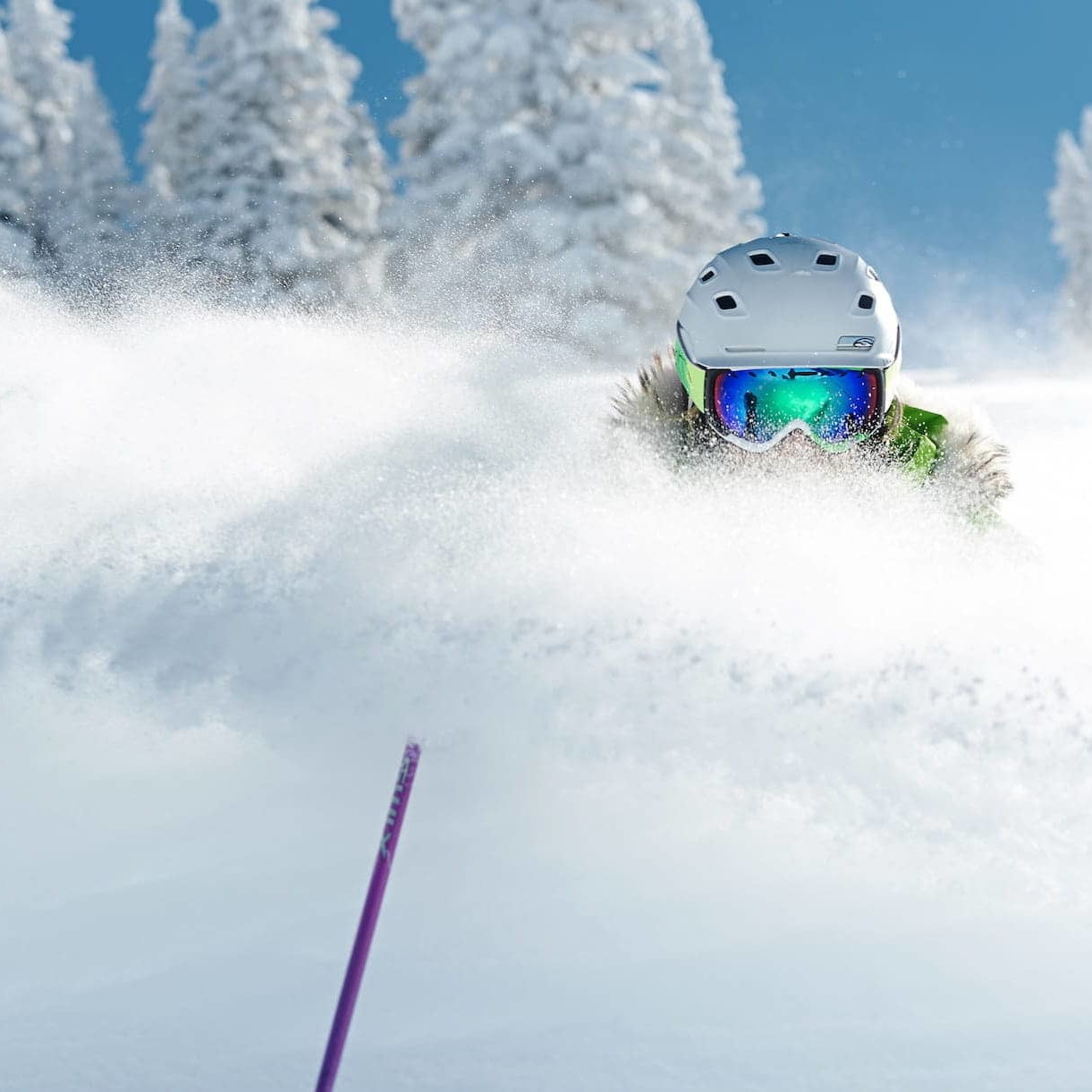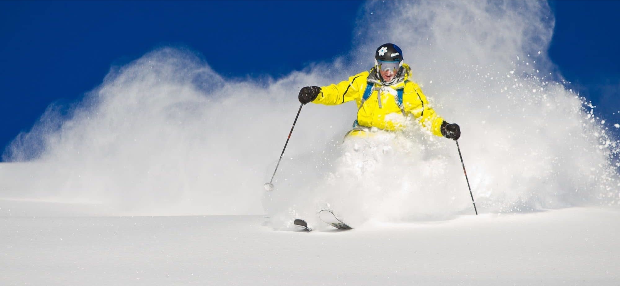 スキーブーツが隠れるほどのパウダーにスキーを滑り込ませるとその軽さに思わず感嘆し、1ターンでそれは驚愕に変わるでしょう。