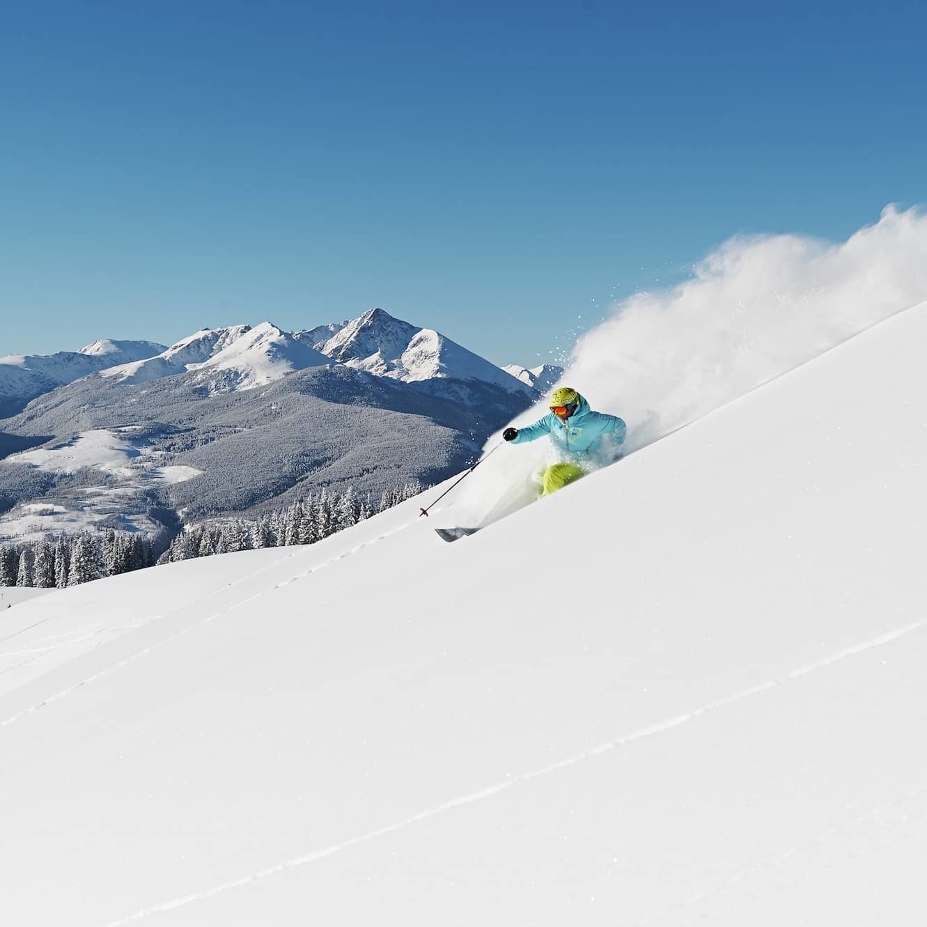 ベイルはアメリカ大陸、太平洋から1500kmも離れたロッキー山脈の標高2500m-3500mにあります。そんな内陸部のベイルに降る雪は軽いかるい極上シャンパンパウダー。