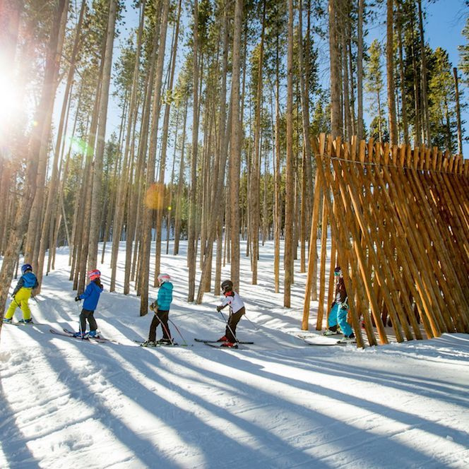 ベイルの奥座敷、ブルースカイベイスンでは、開発時に圧雪車一台分の幅に木が間引きされました。毎日圧雪されるこのコースでは、整地の快適さと林間コースの自然をうまく融合させ、気持ちよくツリーランを楽しむことができます。
