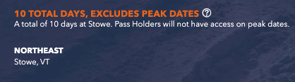 バーモント州ストウでは指定祝祭日以外に、合計10日間まで使えます。
