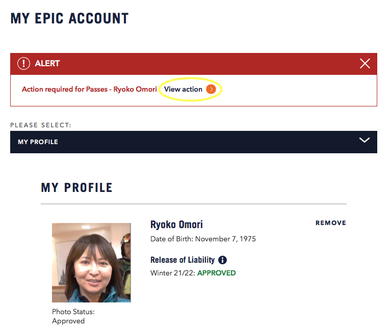 個人設定を変えたい場合は、12月7日までにepicpass.comのマイアカウントからお手続きください。(設定方法はひとつ上のブロックをご覧ください。)