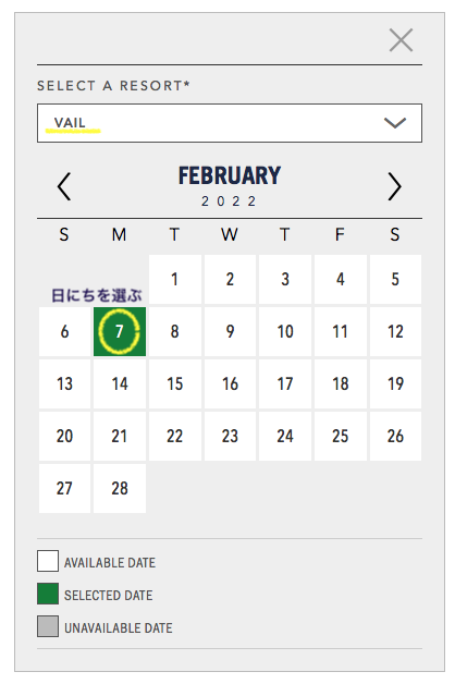 パスが利用できる「特定のリゾート」を選択するか、「すべてのリゾート」を選択することができます。この選択を基に、どのリゾートが閉鎖された場合に補償対象となるかが決定されます。