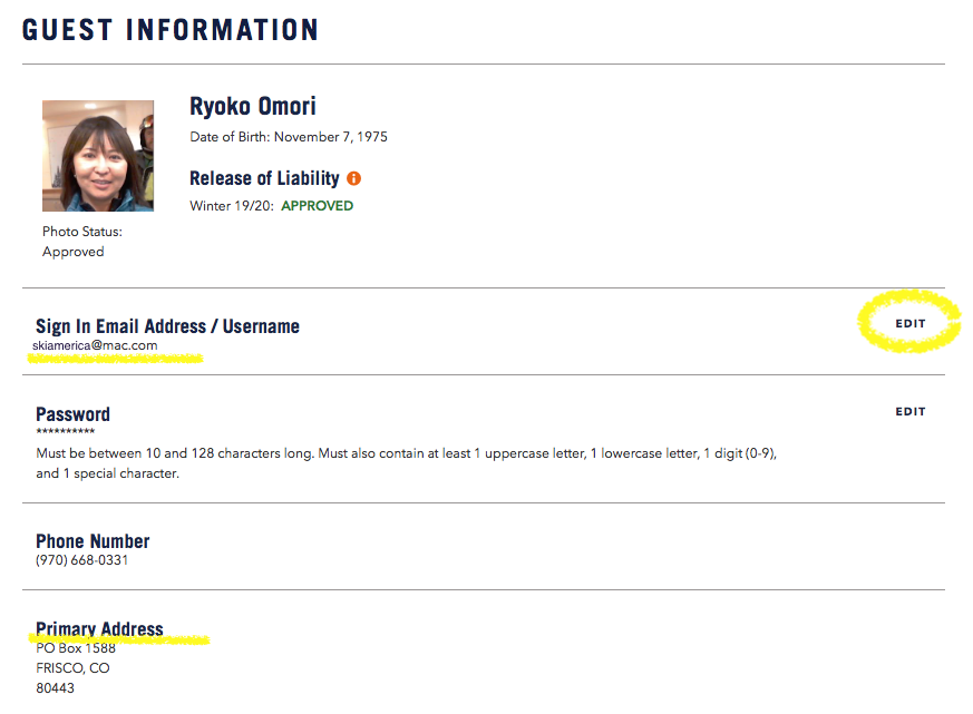 epicpass.com のアカウントにログインした際に、上記のようにご自身の写真が見られて、19/20 の横に緑の文字で APPROVED となっていれば、白馬やルスツなどの提携リゾートに行くまでにパスが届かなくても、白馬やルスツの担当者がコンピューターでこのデータにアクセスをして無料券を発行することができます。