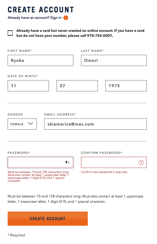 epicpass.com にアクセス。右上の sign in からCREATE ACCOUNT をクリックします。