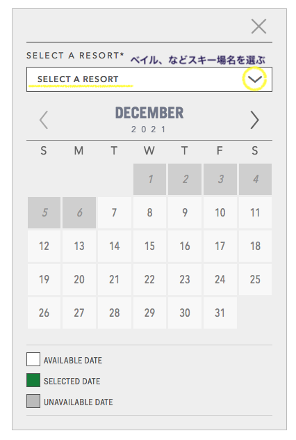 12月7日までにご指定がない場合は、「シーズン全体&すべてのリゾート」設定となり、特定のリゾート閉鎖時に返金額が少なくなる場合があります。